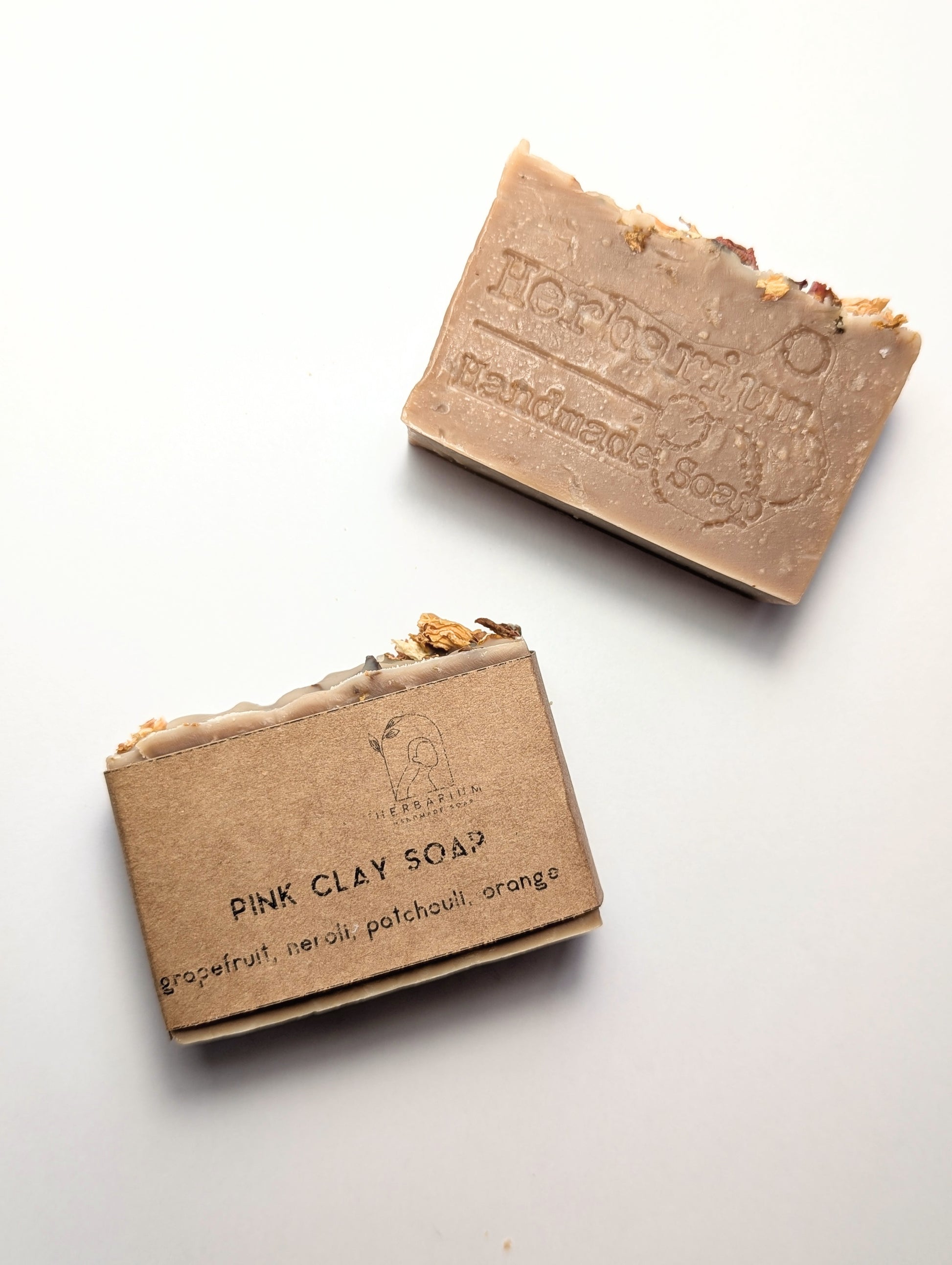 INGREDIENTS: Olea Europaea (Olive) Fruit Oil, Aqua (Water), Cocos Nucifera (Coconut) Oil, Sodium Hydroxide, Cera Alba (Beeswax), Montmorillonite (Pink Clay), Citrus Aurantium (Dulcis) Peel Oil (Orange) Oil, Citrus Aurantium (Neroli) Oil, Citrus Paradisi (Grapefruit) Oil, Pogostemon Cablin (Patchouli) Oil, d-Limonene*, Linalool*
